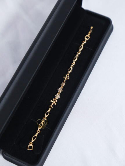 Delicate bracelet with leaf-shaped zircon motifs. Comes with 1-year anti-tarnish warranty