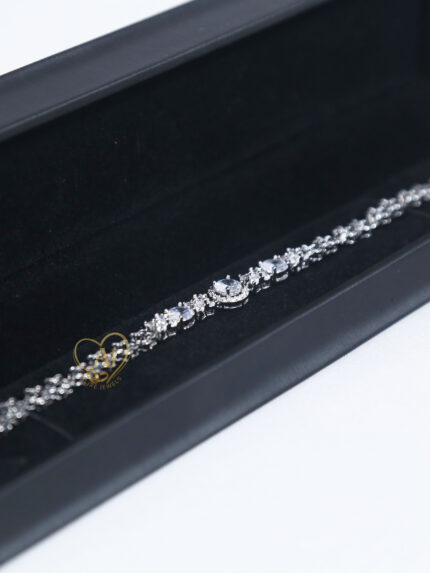 Luxury silver tennis bracelet with oval-cut zircon stones. Elegant, timeless, and comes with 1-year anti-tarnish warranty.
