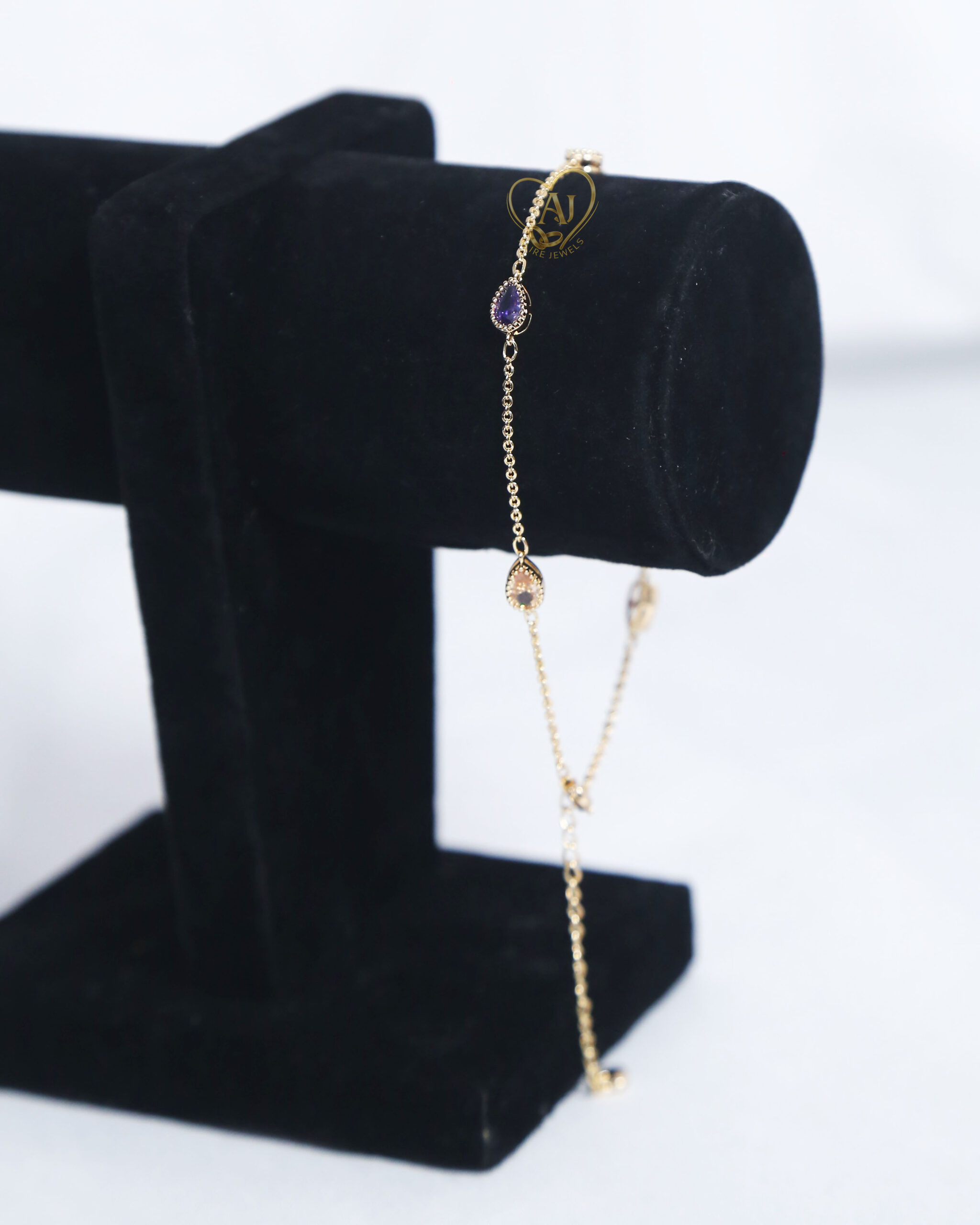 Zircon bracelet with oval stone detailing and fine gold chain. Lightweight and versatile with 1-year anti-tarnish warranty.