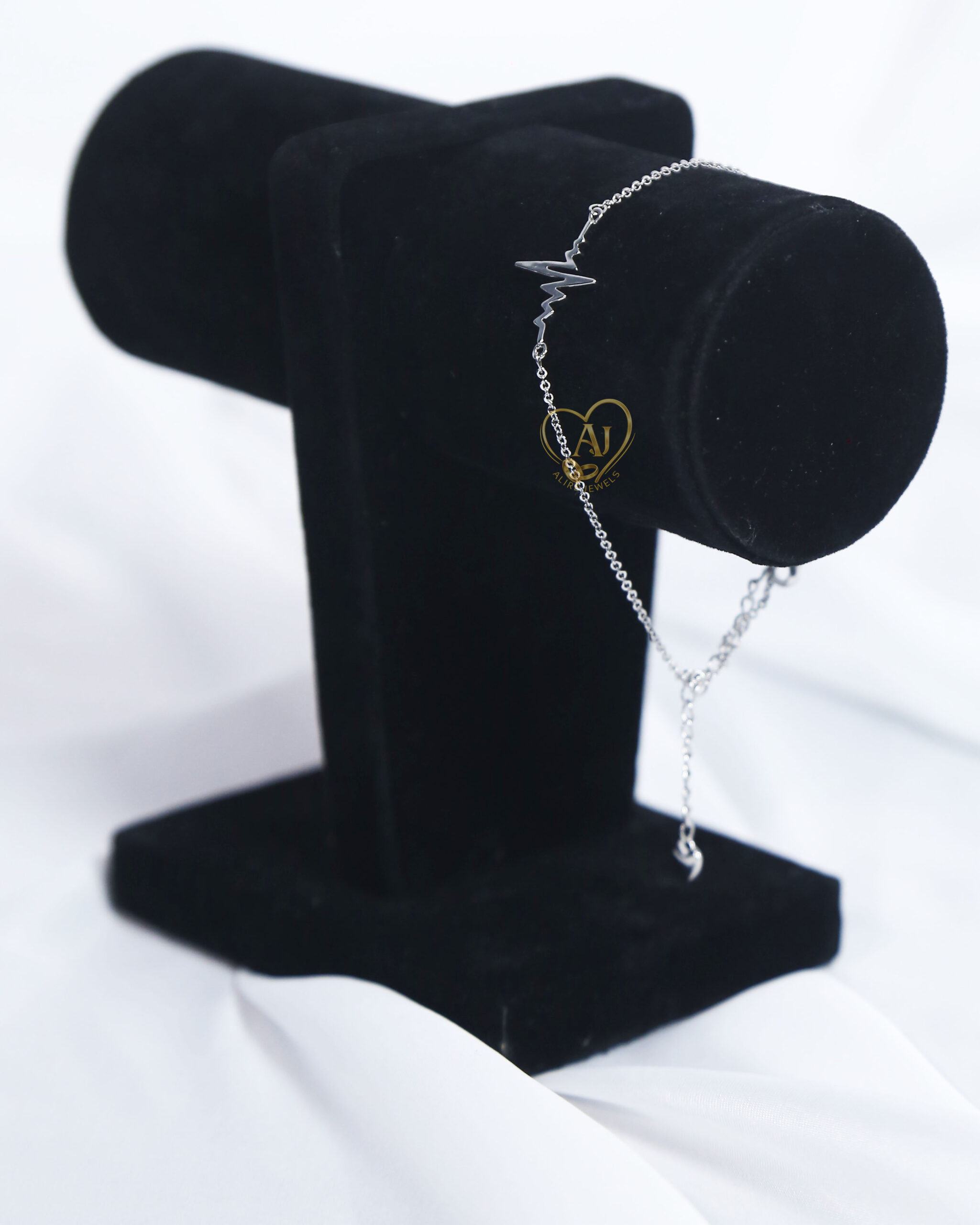Trendy silver chain bracelet with heartbeat/zigzag design. Minimal, lightweight, and durable with 1-year anti-tarnish warranty.