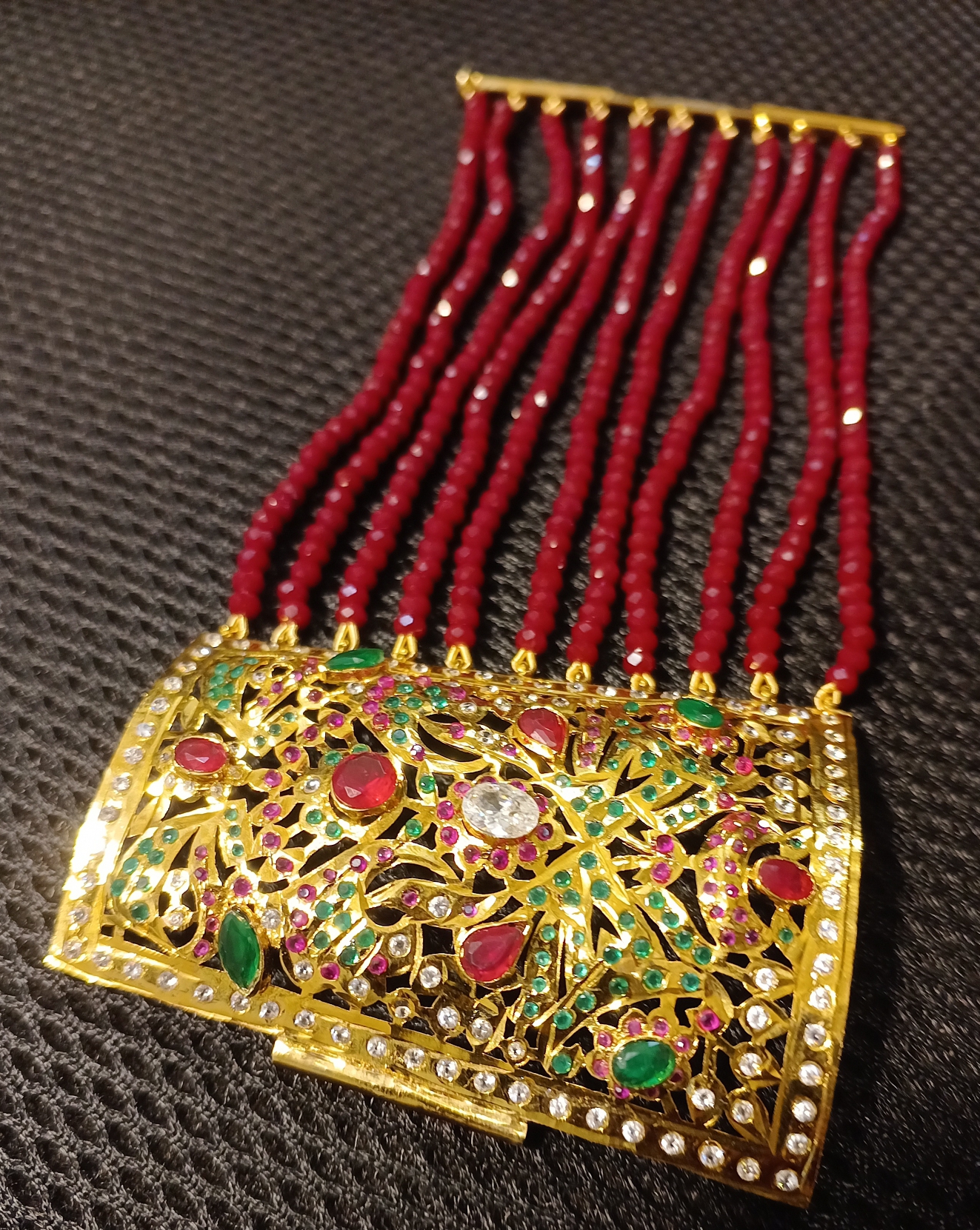 Add a vibrant charm to your festive look with the ALIRE JEWELS 24K Gold Plated Pink Kundan Chandbali Earrings. Designed with intricate kundan floral detailing, pearls, and striking pink beads, these chandbalis are perfect for weddings, mehndi, barat, and cultural occasions. Their teardrop design and bright colors bring a blend of elegance and tradition. ALIRE JEWELS ensures premium craftsmanship, anti-tarnish finishing, and jewelry that reflects timeless feminine grace.