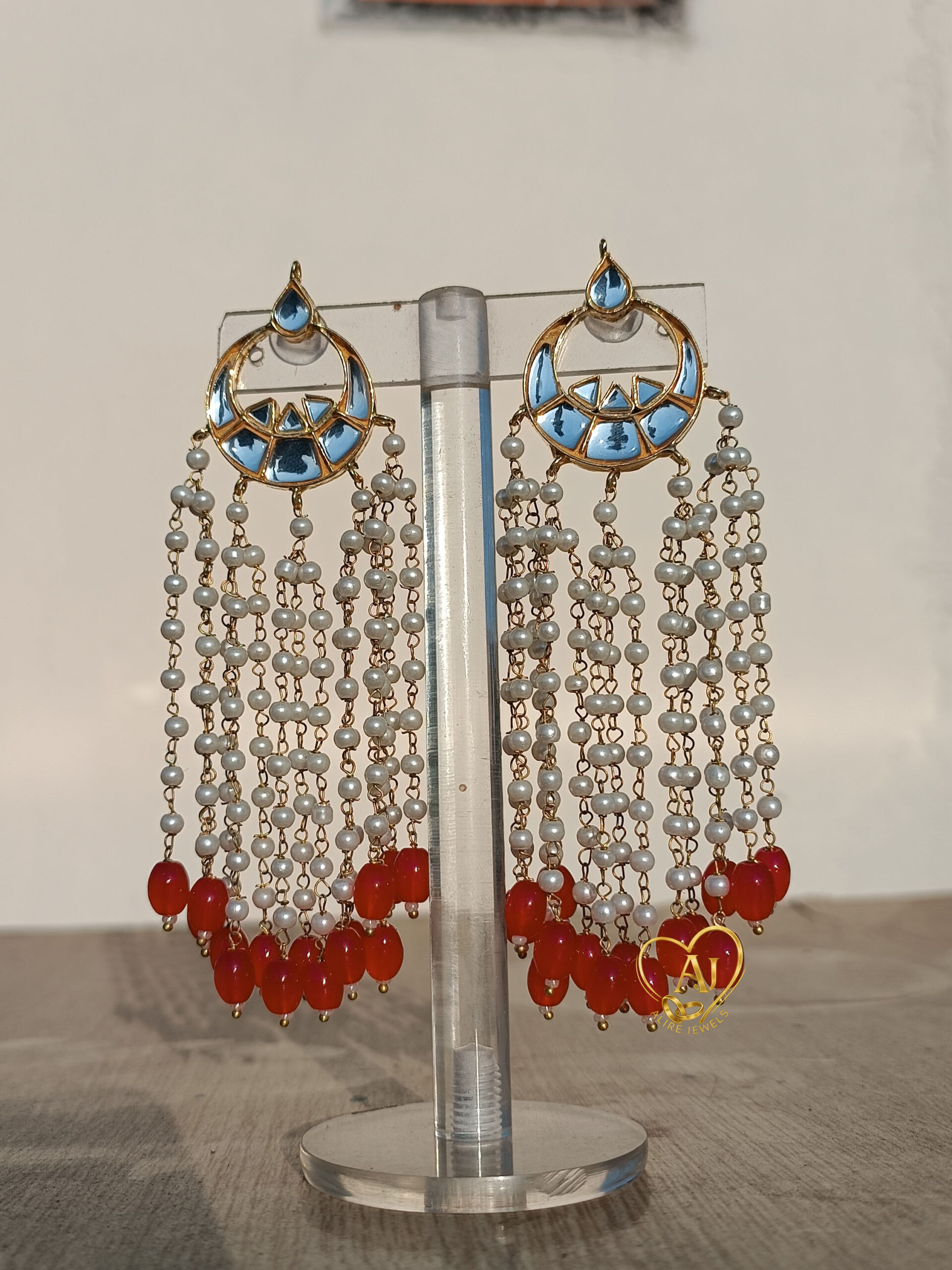 Celebrate tradition with the ALIRE JEWELS 24K Gold Plated Blue Beaded Meenakari Kundan Chandbali Earrings. Intricately designed with multicolor meenakari enamel, kundan work, and detailed pearl hangings, these earrings feature deep blue beads for a royal touch. Perfect for brides, mehndi, barat, and festive wear, ALIRE JEWELS ensures premium craftsmanship, anti-tarnish finishing, and timeless heritage-inspired jewelry for every occasion.