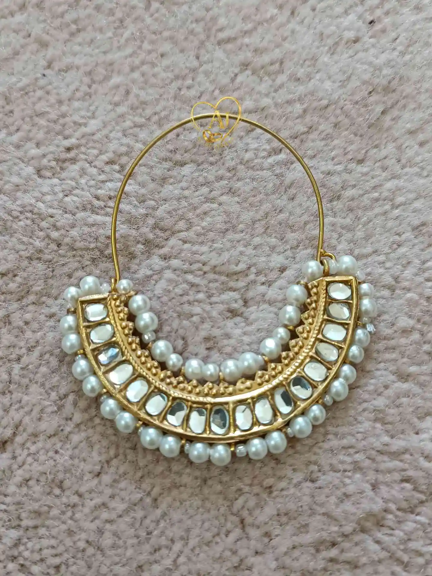Bring cultural elegance with the ALIRE JEWELS 24K Gold Plated Meenakari Kundan Chandbali Earrings. Featuring intricate meenakari enamel in multicolor tones, combined with kundan detailing, green beads, and pearl hangings, these chandbalis showcase the richness of heritage craftsmanship. Perfect for mehndi, barat, cultural events, and bridal wear, ALIRE JEWELS offers premium kundan jewelry with anti-tarnish finishing and timeless artistry.