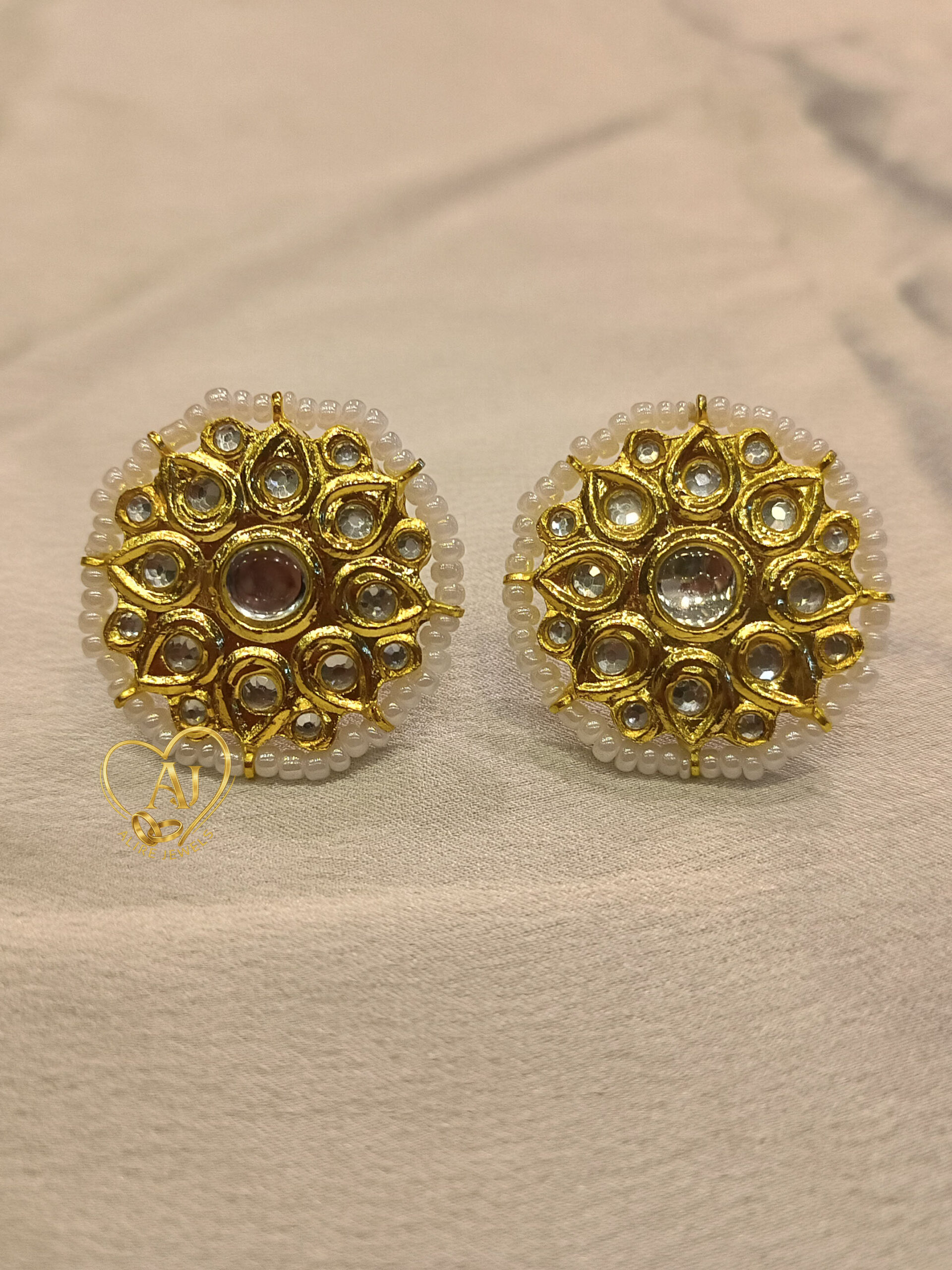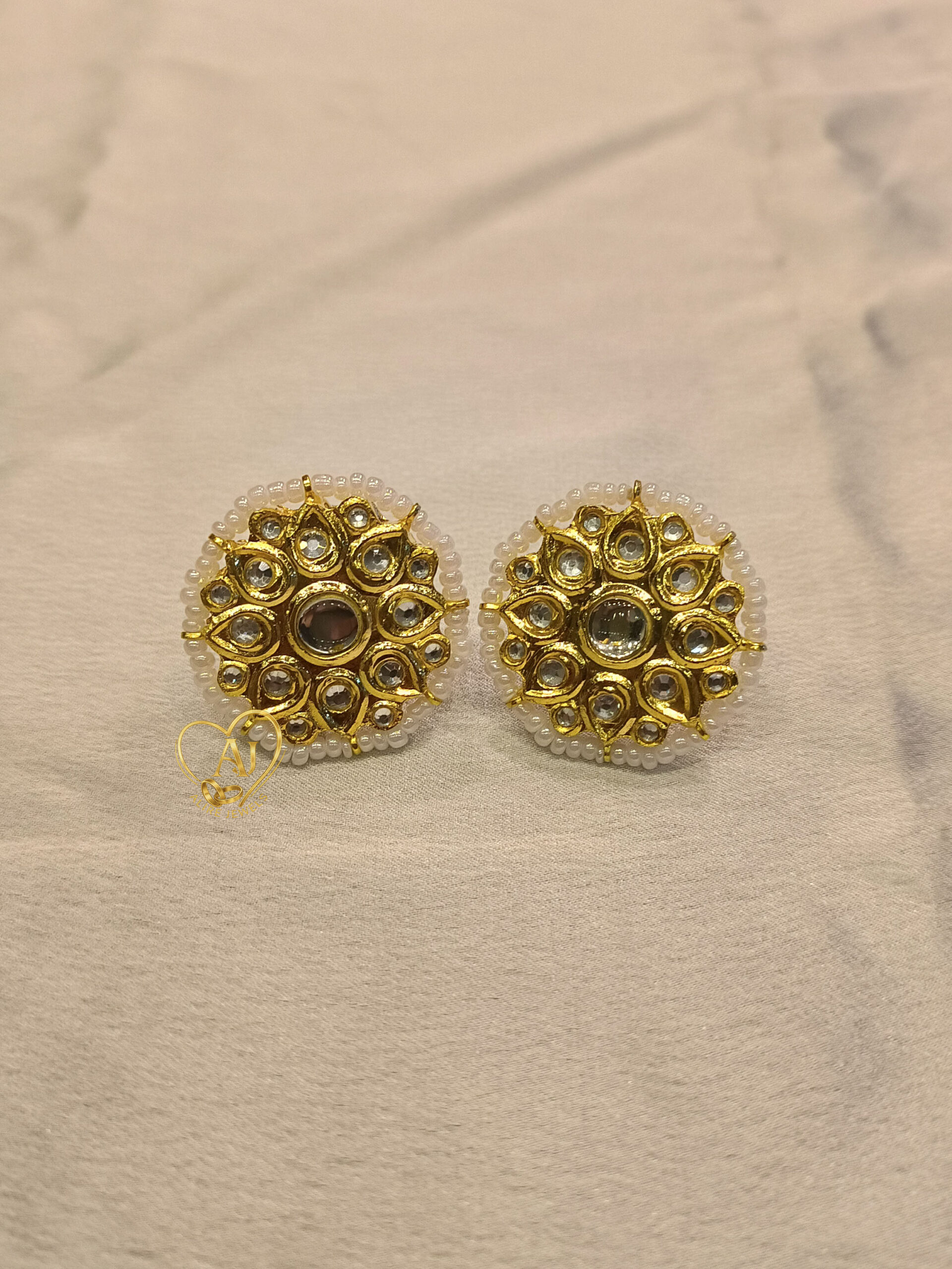 Floral Radiance Kundan Studs – 24K Gold Plated with Pearl Edge