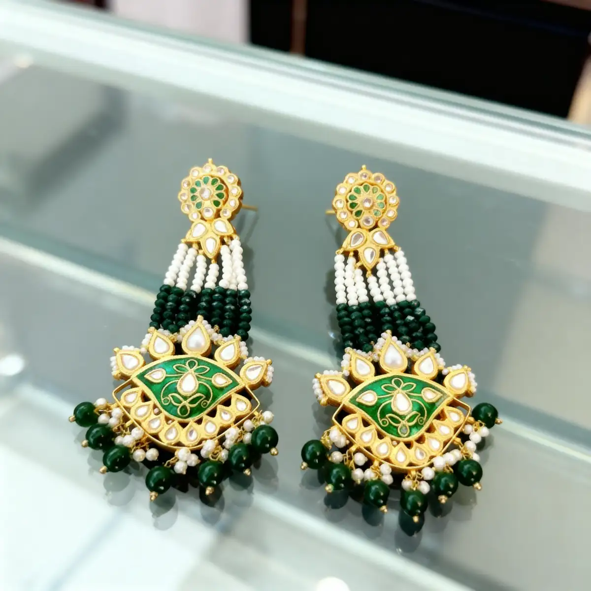 Traditional Kundan Earrings – 24K Gold Plated with Beads & Pearls
