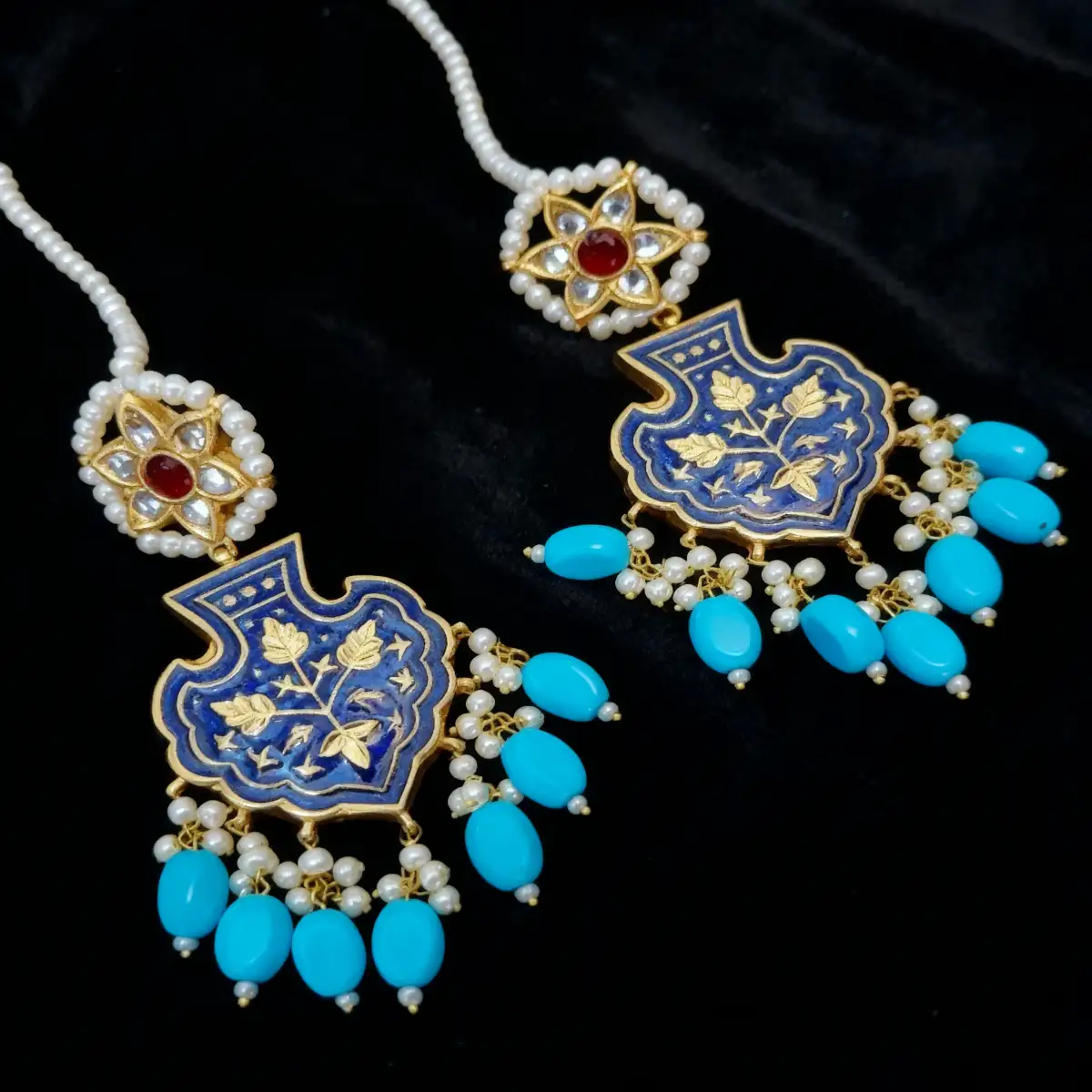 Chandbali Kundan Earrings 24K Gold Plated – Aqua Blue & Pearl Work