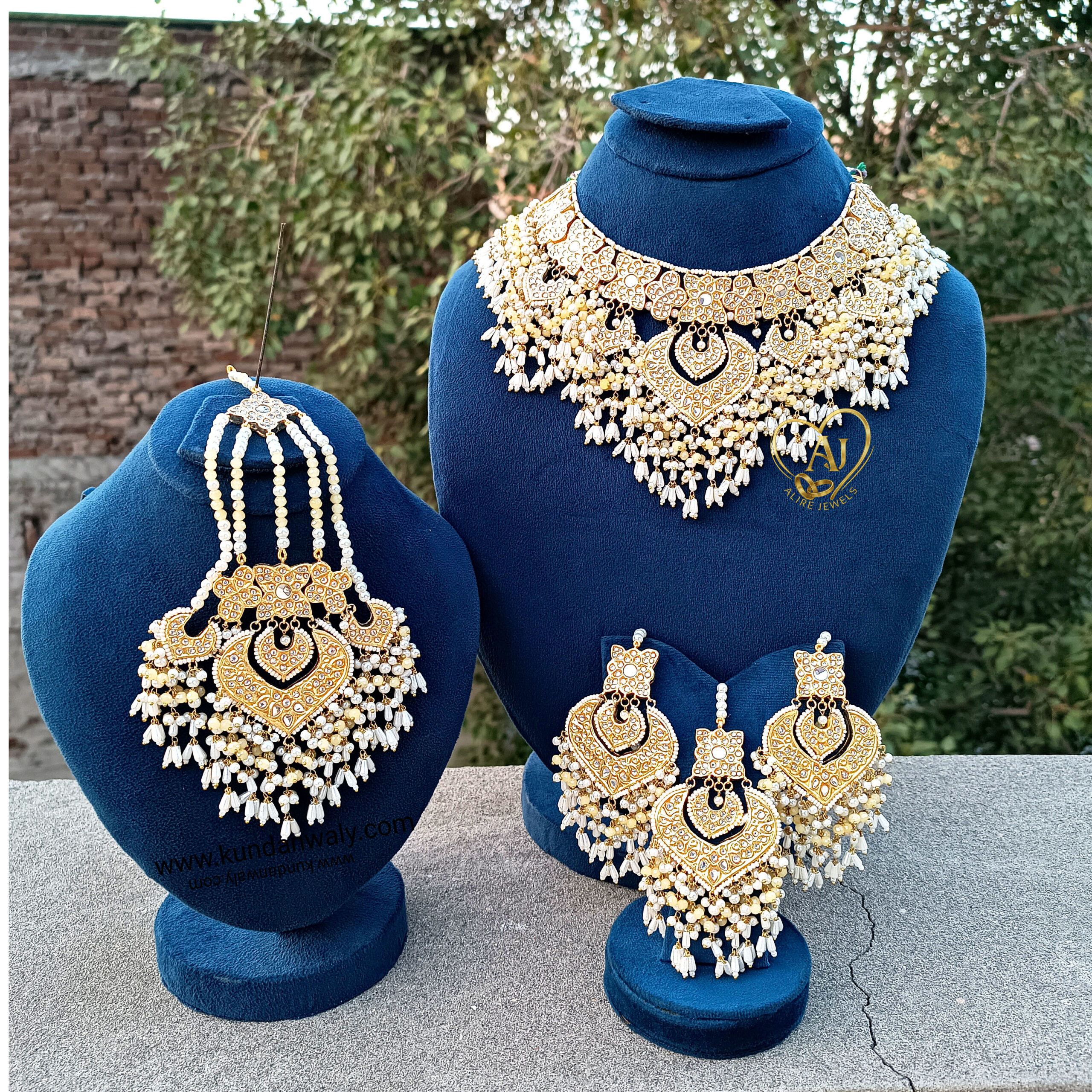Complete Bridal Set – Includes choker necklace, earrings, and jhumar/tikka.