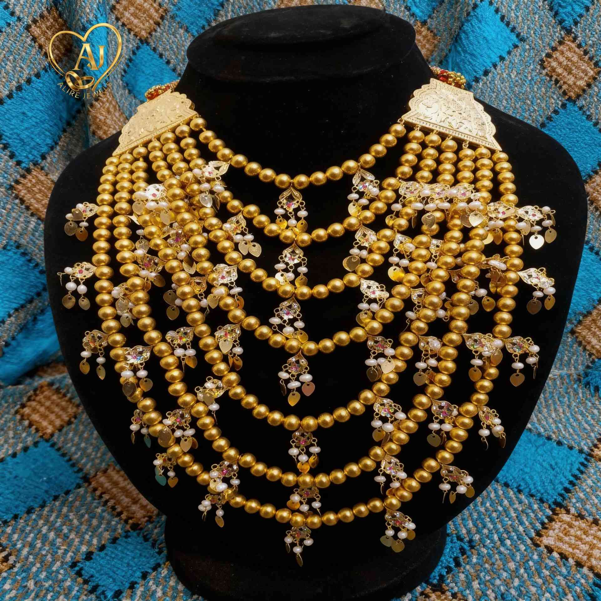 This royal Multani coin choker set is meticulously handcrafted from premium brass alloy and finished with a luxurious 24‑carat gold water plating. The layered coin design adds a regal touch, making it perfect for brides or anyone seeking an opulent statement piece. Each set comes with a one‑year anti‑tarnish warranty and is available at competitive wholesale pricing.