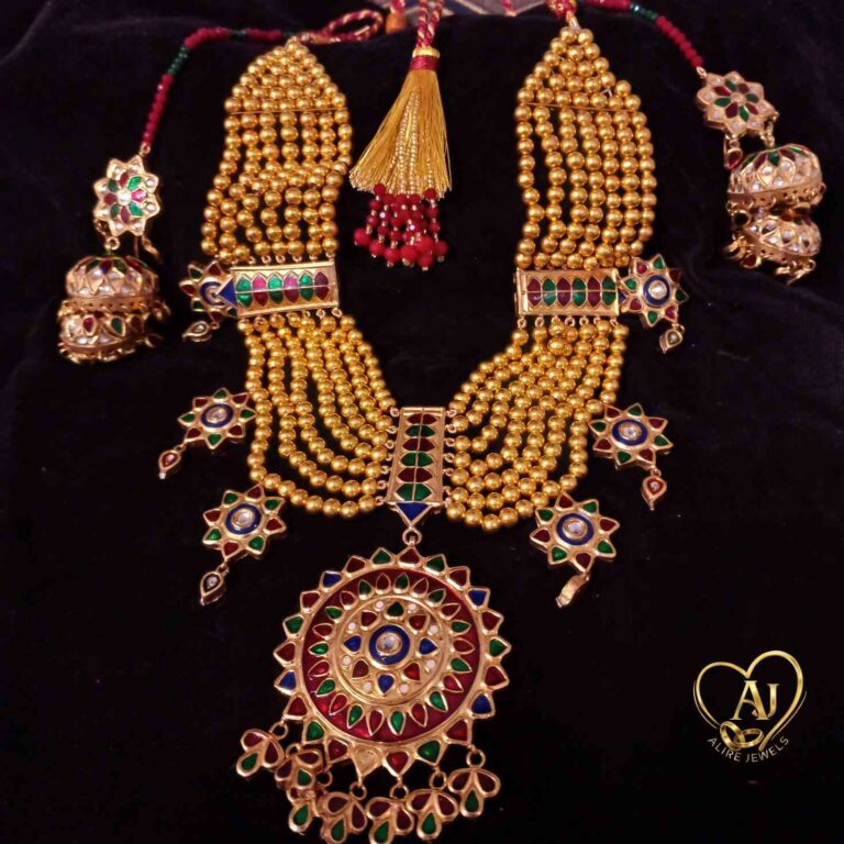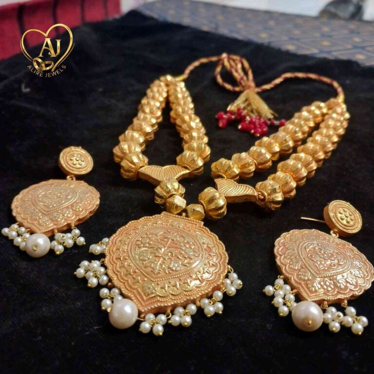 A timeless beauty featuring dual strands of handcrafted brass beads, gold plated in 24-carat finish for a glowing traditional look. Its simple yet royal design makes it perfect for weddings and festive wear. Dipped in pure gold water for long-lasting color with a one-year tarnish warranty, available at factory-direct wholesale rates.